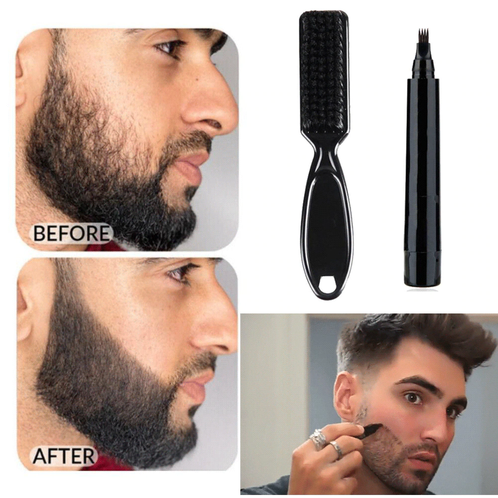 LÁPIZ DE BARBA Y CEPILLO EFICAZ PARA MEJORAR EL VELLO FACIAL IMPERMEABLE A PRUEBA DE AGUA Y SUDOR 😱😲💦